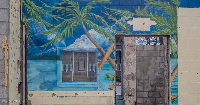 This building at the corner of Bridge and Main Streets is giving way to something new. It began life as a service station and was last a restaurant. Several incarnations intervened. It’s razing revealed some of its stages and created unintended abstract works of art.
